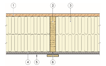 På innsiden (over bjelkelaget) legges sponplater som både limes og skrus for å oppnå en solid, knirkefri og tett overflate som danner et godt underlag for videre gulvlegging.