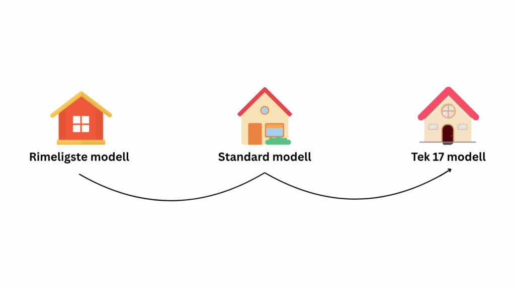 Forskjellen mellom modellene er kun hvor godt bygget er isolert. Altså vegg-tykkelse. Tynnere vegger vil si rimeligere bygg, mens tykkere vegger vil si dyrere bygg.